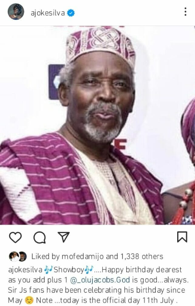 “Show boy. Happy birthday dearest as you add plus 1 @_olujacobs God is good… always Sir Js fans have been celebrating his birthday since May. Note…. Today is the official day 11th July”.