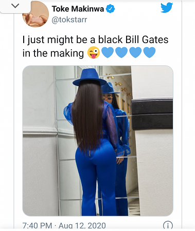 Popular Nigerian OAP, Toke Makinwa has given herself a new title, A BLACK BILL GATE IN THE MAKING.