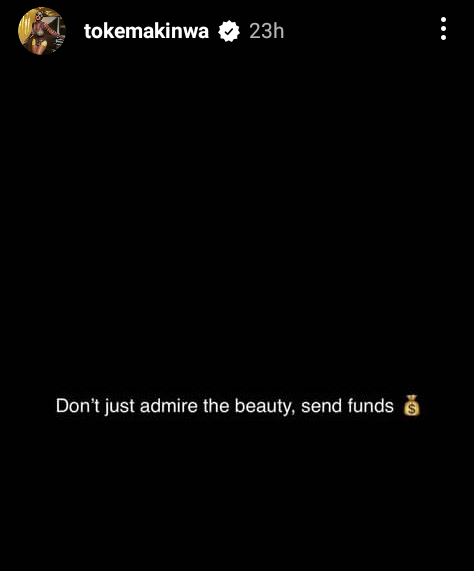 “Don’t just admire the beauty, send funds” – Toke Makinwa