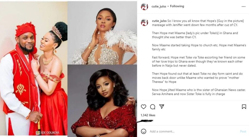 Then Hope met Maame [lady’s pic under Toke’s] in Ghana and thought she was better than CY.