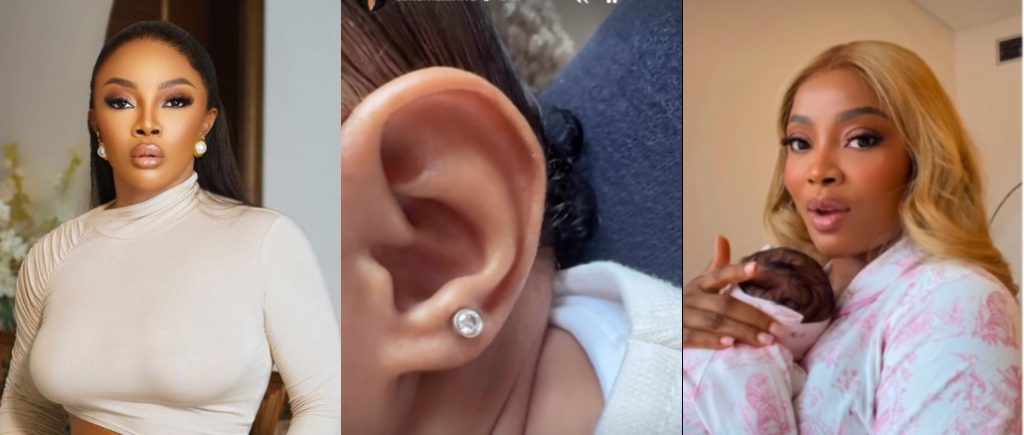 Media personality Toke Makinwa recently treated her daughter, Yakira Eliana, to a pair of diamond earrings.