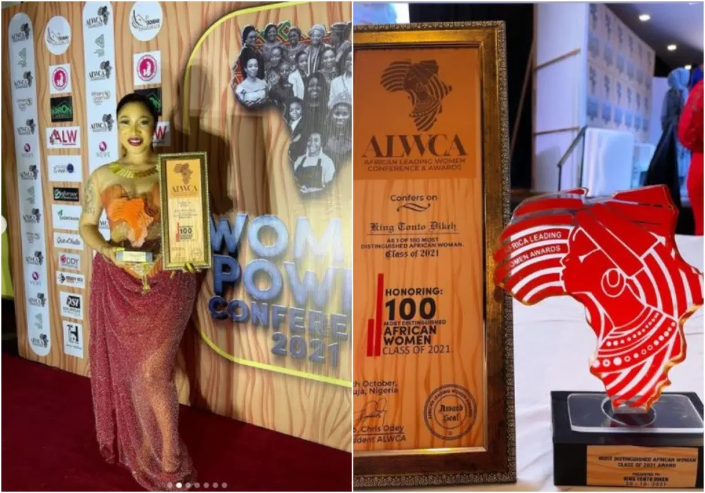 Controversial Nigerian actress Tonto Dikeh was honoured during the African Leading Women Conference and Award of 100 most distinguished African women class of 2021.