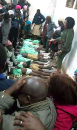 Distressing scenes showed parents collapsing in grief after identifying their children’s bodies in a local hospital.