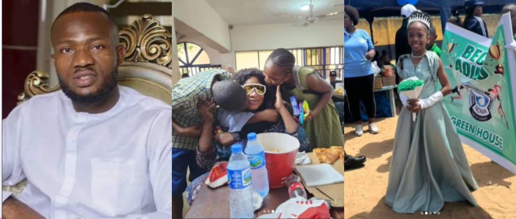 One of the photos featured the daughter he referenced, happily participating as “queen of her house” during a recent school sports competition. Another showed the children with Bimbo’s older sister, who had visited them at their boarding school.