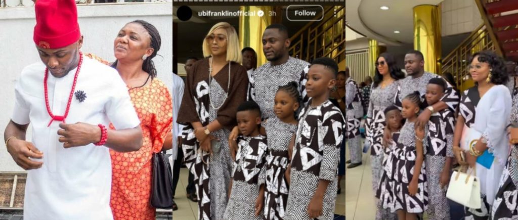 Music executive Ubi Franklin experienced an emotional moment as his former partners, actress Lilian Esoro and entrepreneur Sandra Iheuwa, came together to support him during the funeral of his elder sister.