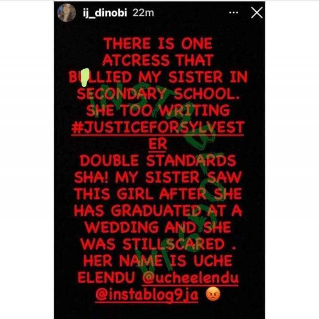 Nollywood actress Uche Elendu has been called a hypocrite for joining the hash tag #JusticeforSylvester after she was called out for bullying.