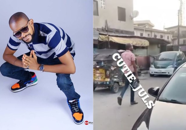 In the clip, Uche Maduagwu who seems not to have known he was being videoed could be seen effortlessly strolling while donning a shirt, jean trousers and flip flop slippers.