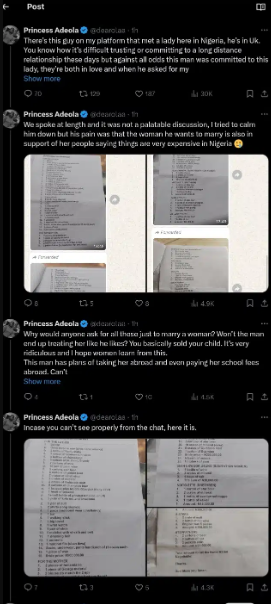 A viral post on X (formerly Twitter) has caused a stir after a Nigerian man in the UK supposedly canceled his wedding because the bride price was an astonishing ₦3.5 million.