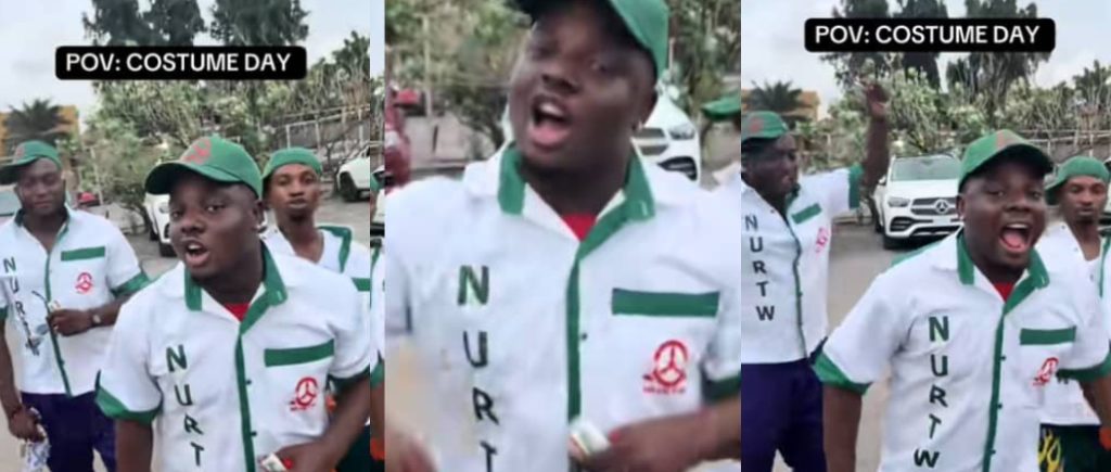 Final-year UNILAG students took costume day to the next level by dressing up as members of the National Union of Road Transport Workers (NURTW) and imitating their mannerisms.