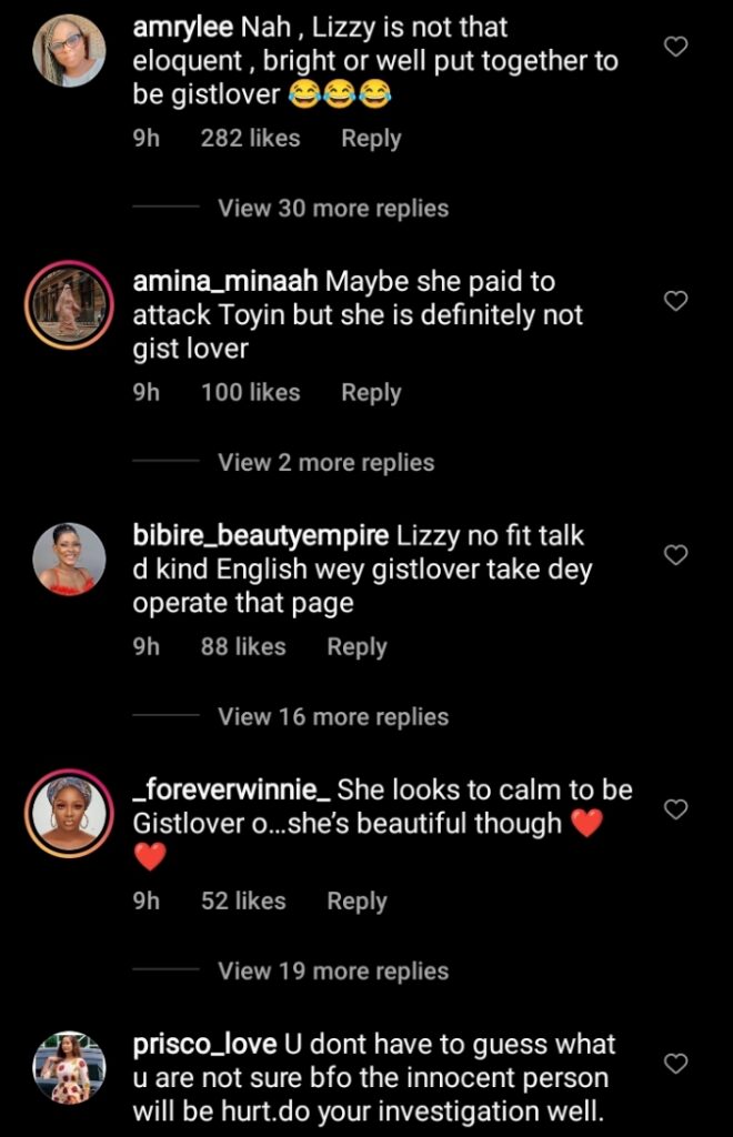 A lady has allegedly exposed Lizzy Anjorin as The face behind GistLover blog and has revealed that her feud with Toyin Abraham is causing some drama.