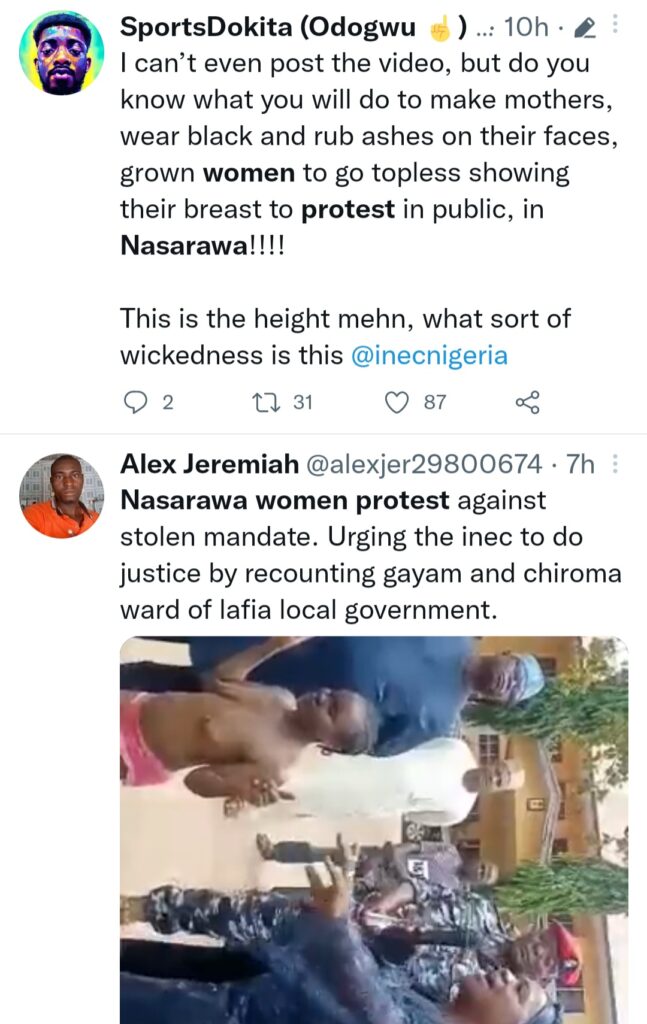 Viral videos shared online show women protesting naked in Nasarawa State after the March 18 governorship election.