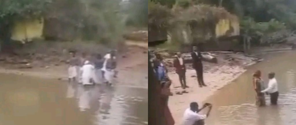- Photos showing a Christian baptism and a traditional ritual taking place at the same river on the same day have gone viral, sparking humour and online.