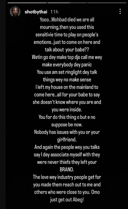“Yooo..Mohbad died we are all mourning,then you used this sensitivie time to play on people’s emotions..just to come on here and talk about your babe??