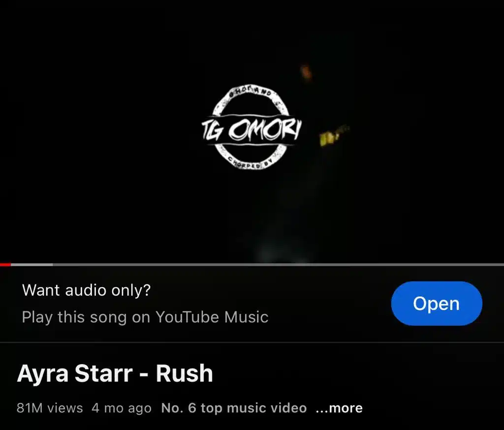 Nigerian singer, Oyinkansola Sarah Aderibigbe, widely known as Ayra Starr successfully reaches another feat, as “Rush” attains 80 million views on youtube.