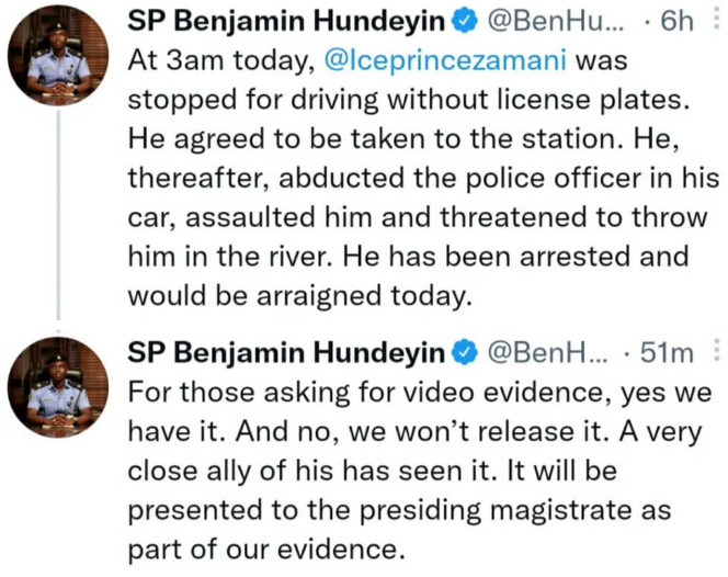 Benjamin Hundeyin, the Lagos state police command spokesperson, has announced that the command has video evidence of Nigerian rapper, Ice Prince assaulting a police officer and that the video will be presented as evidence against him in court today September 2.