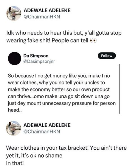 Adewale Adeleke, the elder sibling of Afrobeats artist Davido, has utilized the X platform to urge individuals to refrain from donning counterfeit designer apparel.