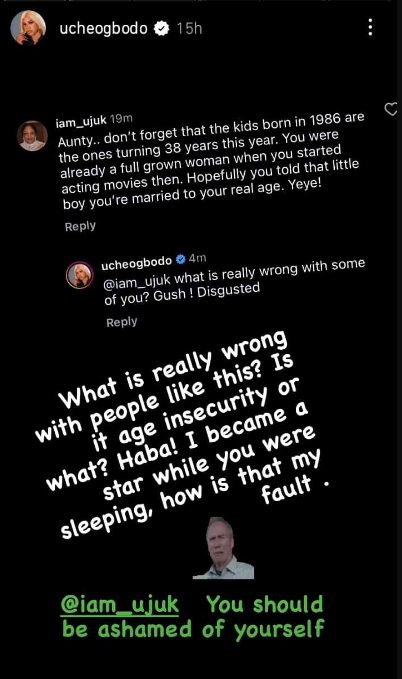 A social media user doubted her statement and accused her of lying about her age, stating that those born in 1986 are the ones who are truly turning 38. The troll also pointed out that Uche had been acting in movies for a significant period of time, implying that she must have been an adult during that period.