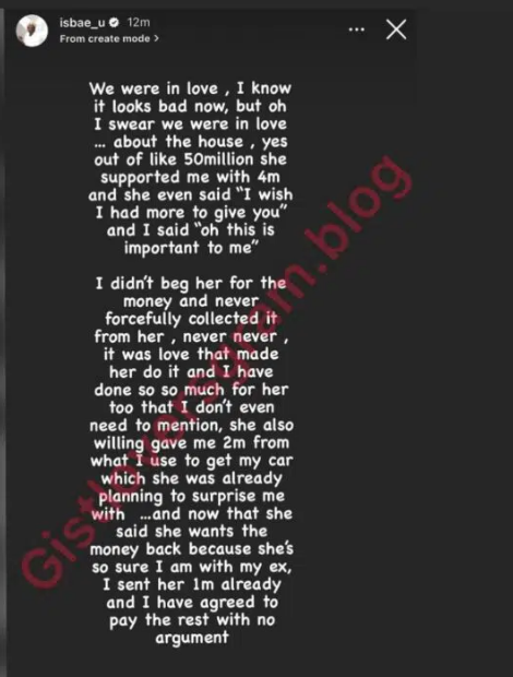 Defending Himself, Isbae U Via His Instagram Stories Told His Side Of The Story.