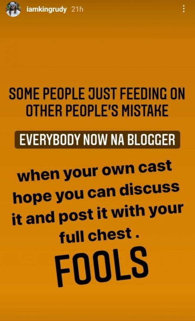 Rudeboy shared on his Instagram page saying he hopes when those dragging and criticizing Tiwa Savage’s own cast they can discuss it with their full chest now that everyone has turned into a blogger and has something to say.