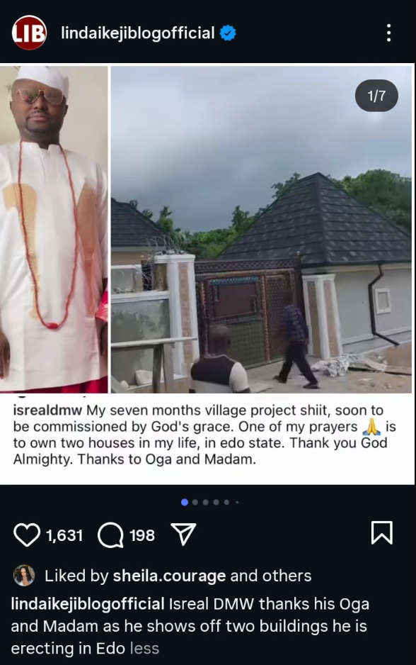 Sheila Courage, ex-wife of Israel DMW, reacted to his recent post showcasing two houses he’s building in Edo State.