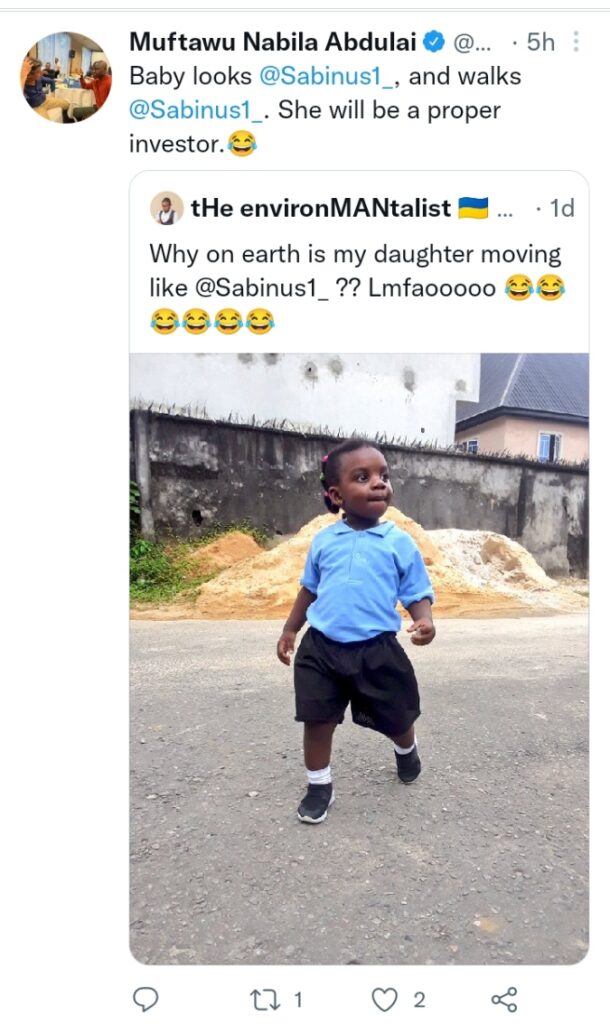 A Nigerian man has caused a stir online after he posted a photo of his pretty daughter and wondered why the girl walks like ace comedian, Sabinus.