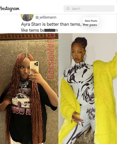 A social media user named Willsman has highlighted on the major reason why most Nigerian music lovers prefer Tems over Ayra Starr.