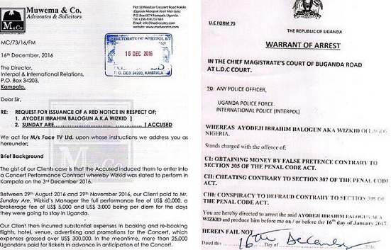 Now news has it that a Ugandan Court has issued an arrest warrant for Wizkid and his manager Sunday Are for failure of the music star to appear for the concert he was fully booked and paid for.