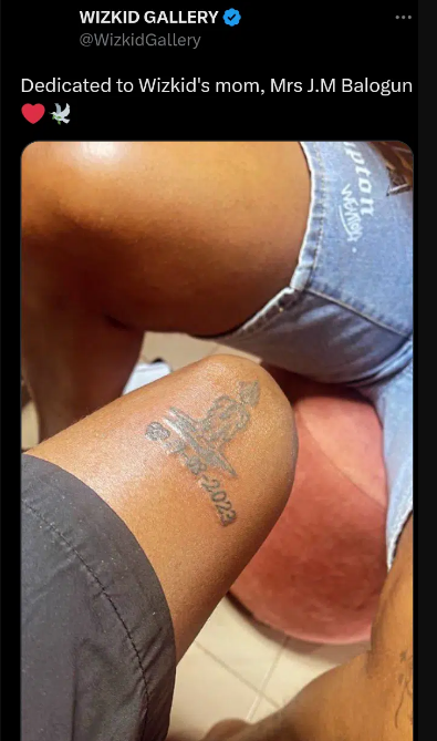 A devoted fan of Ayodeji Balogun, better known as Wizkid, has honored Wizkid’s late mother with a permanent tattoo on his leg.