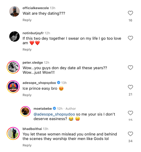 The post was actually to congratulate Ice Prince on his new album. Some people in the comments section believed they are in a romantic relationship, while others thought they are just good friends.