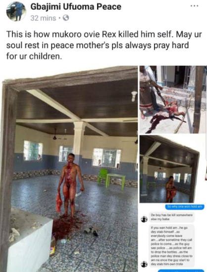 Yahoo Boy Commits Suicide by Stabing Himself in Delta State [Graphic Photos] June 1, 2018 Gist Lovers Extra 0 Photo 1 Photo 2 Photo 3 1 2 yahoo boys