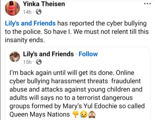In addition, she called on Nigerians abroad to rally behind her in reporting May Edochie’s supporters to the police for alleged cyber-bullying.