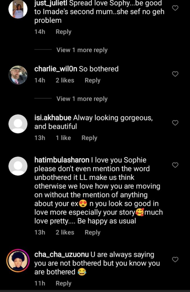 However, Many of Sophia’s fans and followers have stormed her page, and tackled her claims of feeling unbothered. Others gushed over her new pictures.
