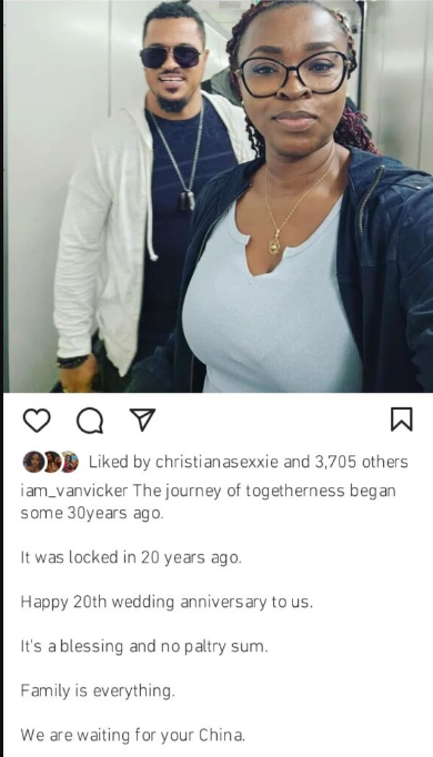 Van Vicker has left some of his fans heartbroken as he celebrates his 20th wedding anniversary with wife.