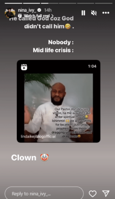 After expressing her extreme disdain of the Nollywood actor’s recent venture into church business, Nina Ivy went on to call him a “clown.”