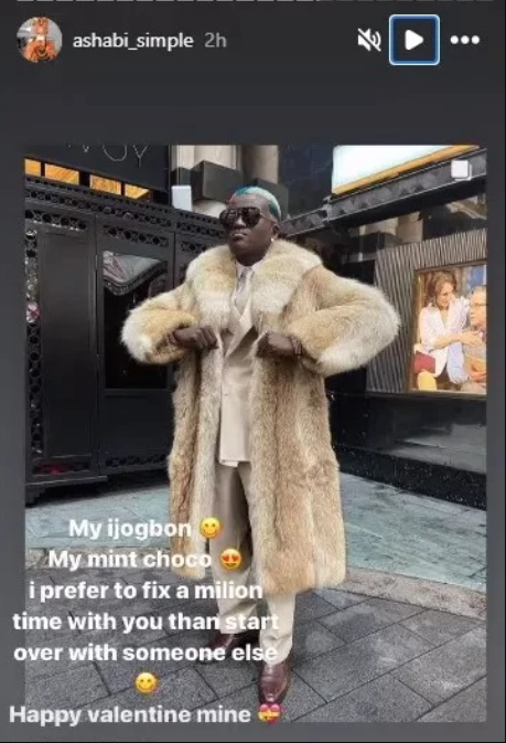 On Valentine’s Day, Nigerian actress Ashabi Simple took to Instagram to express her long-standing love for controversial Nigerian artist Habeeb Okikiola, also known as Portable.