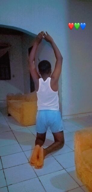 Showing him he’s still her son and still living under her room, the mother punished him by asking him to kneel down and raise his hands up.