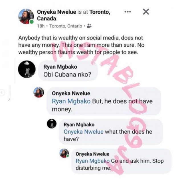 Nigerian Filmmaker, Onyeka Nwelue has stated that on social media that Obi Cubana does not have money and he gave his reason why he thinks so.