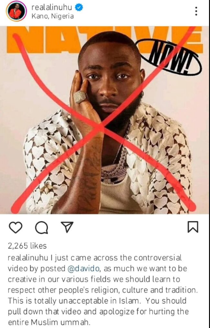 “I just came across the controversial video posted @davido as much we want to be creative in our various fields, we should learn to respect other people’s religion, culture, and tradition. This is totally unacceptable in Islam. You should pull down that video and apologize for hurting the entire Muslim Ummah”.
