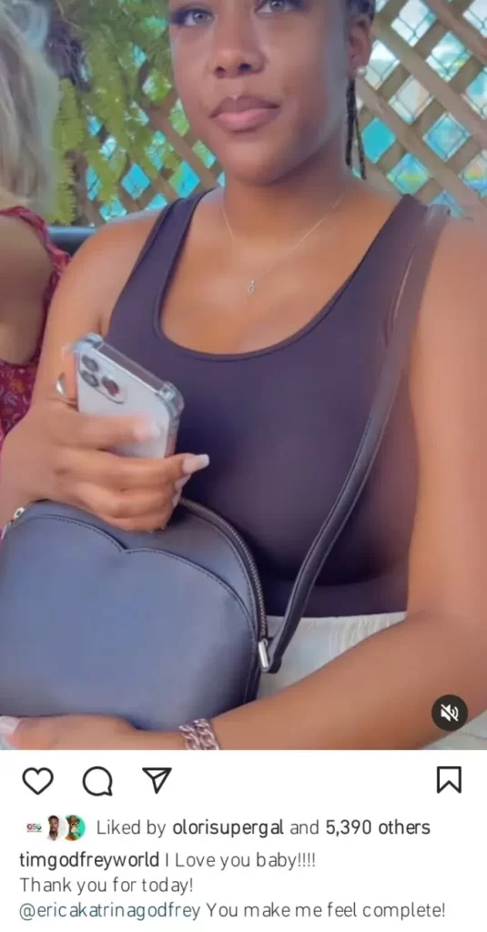 “I love you baby!! Thank you for today! @ericakatrinagodfrey You make me feel complete!”.