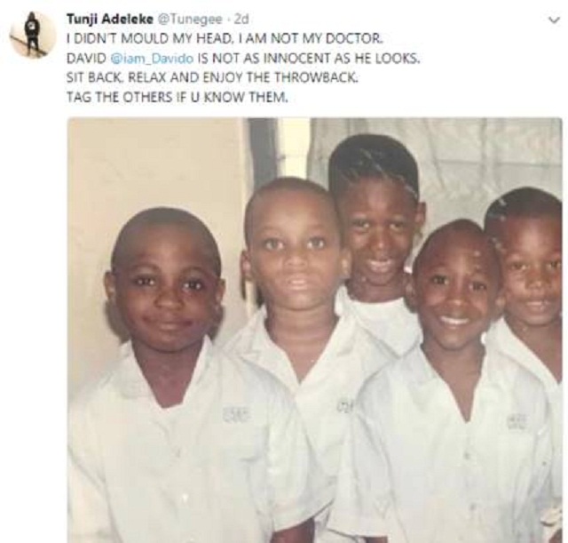 I DIDN’T MOULD MY HEAD, I AM NOT MY DOCTOR. DAVID @iam_Davido IS NOT AS INNOCENT AS HE LOOKS. SIT BACK, RELAX AND ENJOY THE THROWBACK. TAG THE OTHERS IF U KNOW THEM