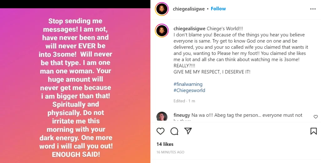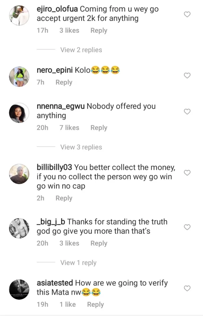 ejiro_olofua wrote: “Coming from u wey go accept urgent 2k for anything”