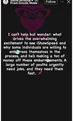 His comment has since sparked mixed reactions online, with some agreeing with his perspective while others defended the entertainment value of iShowSpeed’s visit.