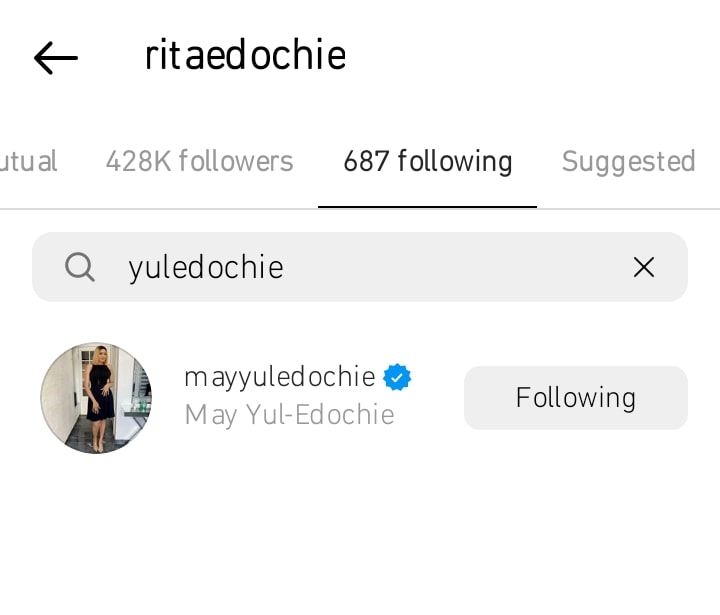 Following this, Yul Edochie has severed ties with the veteran actress, probably for not taking his side. A look at Rita Edochie’s Instagram followers shows that she has also unfollowed the actor.